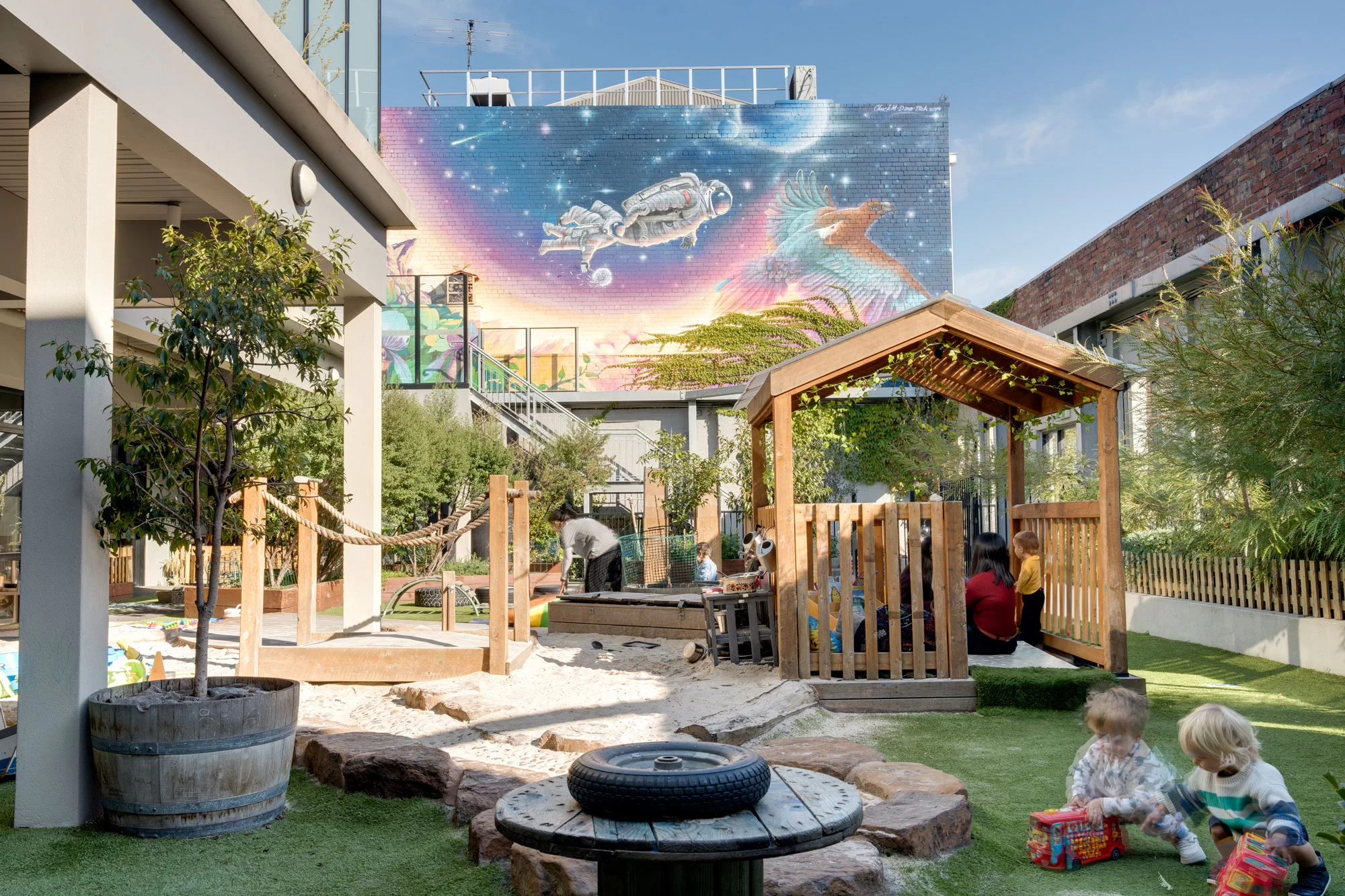 Image of our Fitzroy outdoor space with sandpit and cubby house